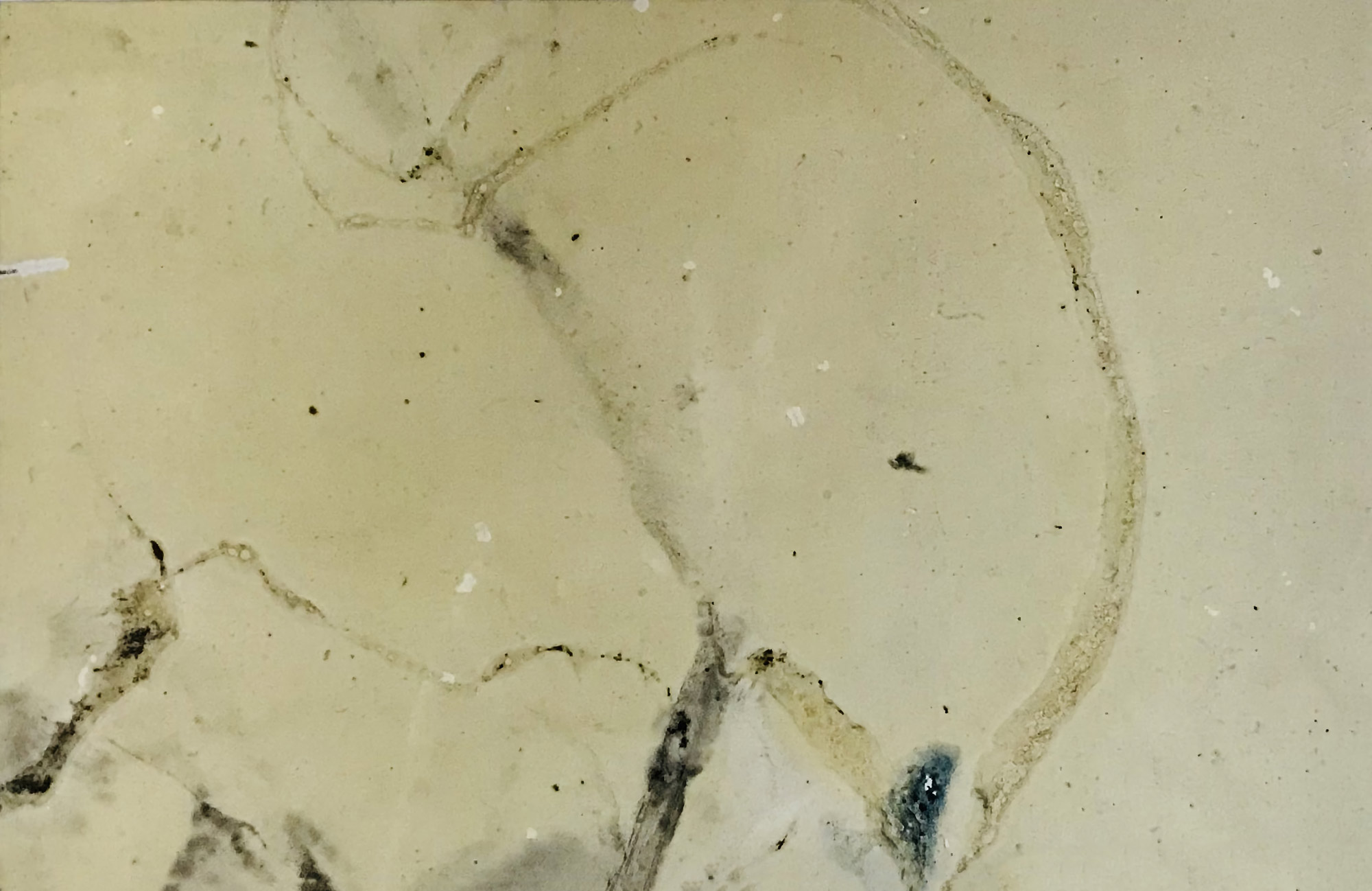 Pigments en poudre et blanc d'oeuf appliqués sur fond liquide (vernis et térébenthine), sur Panolac