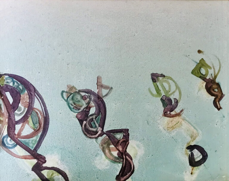 Pigments en poudre et térébenthine appliqués sur fond sec, sur Panolac